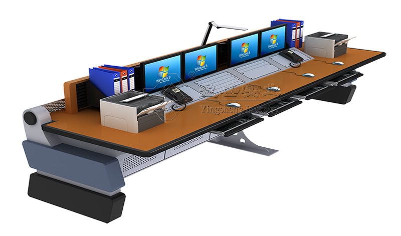 科技型调度控制台-E的走线一般将线缆 直接从艺术型底脚上引入底柜内部,内 部设置强弱电双向布线通道,通道距离 在32CM以上,较少强电对弱点的干扰, 保障内部设备的高效运转。 |