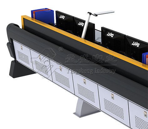 多功能开放式背板墙设计,可放置单层 双层液晶显示器,对于后台面高负荷的 负责线路起到了隐藏的效果,同时背板 墙上面可以增加亚克力发光灯带,增加 调度控制台的整体科技感、现代感台。 |